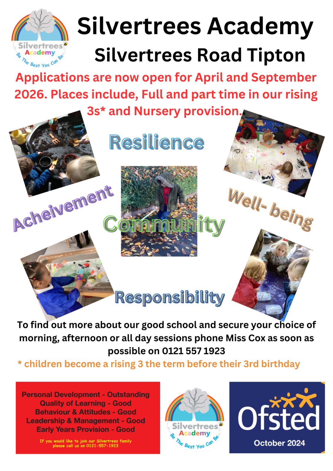 If you are interested in your child joining the Silvertrees family or if you would like some more information about the full time provision, please contact school and speak to our Business Manager, Mr Longville.