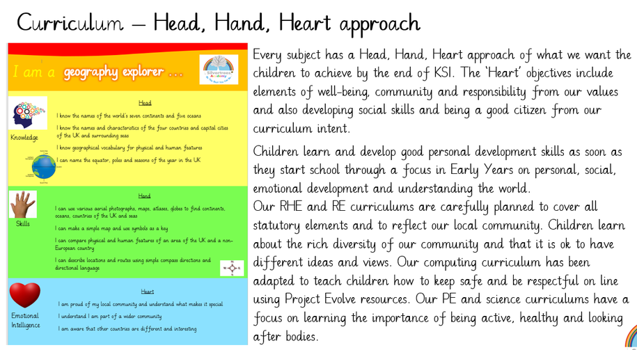 INTENT: Every leader and staff member at Silvertrees Academy is dedicated to shaping young lives now so they can build bright and fulfilling futures. We want every child at Silvertrees to develop a strong sense of identity and self-worth that will give them the confidence and resilience to succeed in an ever changing and demanding world. We will give children the knowledge and skills to be happy and healthy; to keep themselves safe and be physically and mentally healthy. They will develop the skills to form healthy relationships in our modern world. Our children will know how to make the right choices but will also be aware of their rights and have the confidence to say no! As an infant school we want our children to see the awe and wonder of the world around them; to be excited, to explore and be part of a wider community. To understand the richness of our diverse community and embrace and celebrate differences. In short, at Silvertrees we are committed to shaping resilient and responsible young people who have positive lives and a positive effect on the lives of others.